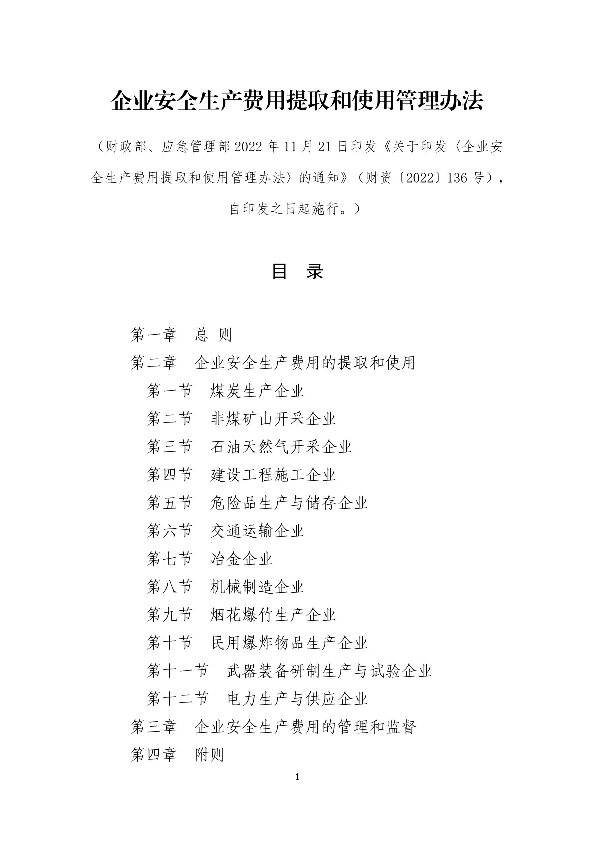 企业安全生产费用提取和使用管理办法