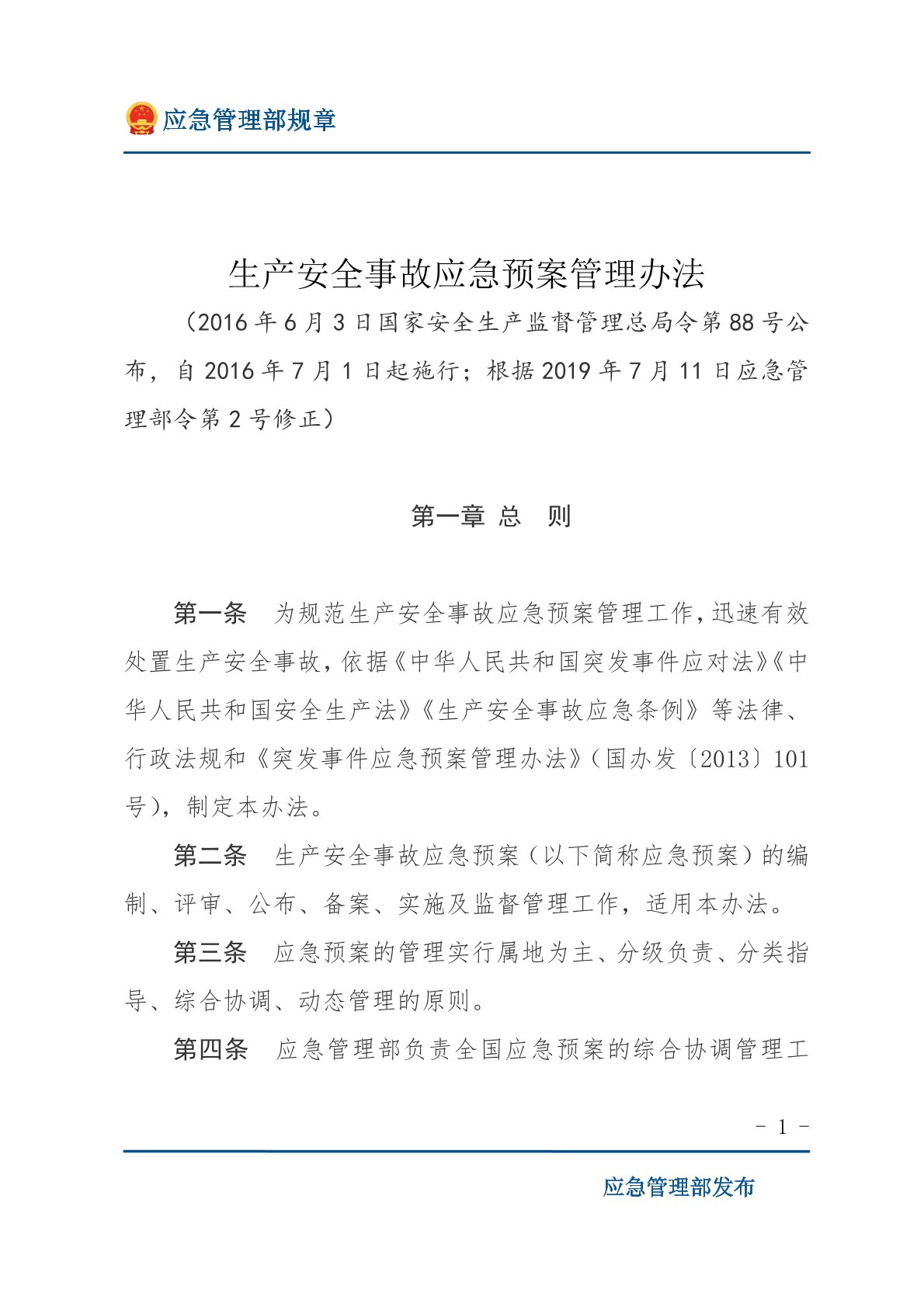 生产安全事故应急预案管理办法